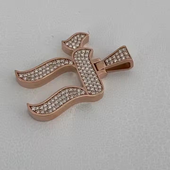 Colgante de oro rosa de 18 quilates con diseño de alfabeto chapado en rodio de diamante para regalo