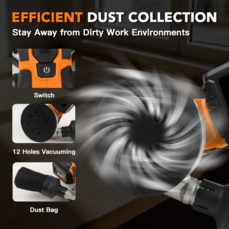 Lijadora Orbital Aleatoria Sin Escobillas de 18V, Lijadora Orbital a Batería de 18V con Velocidad Variable, Sin Escobillas