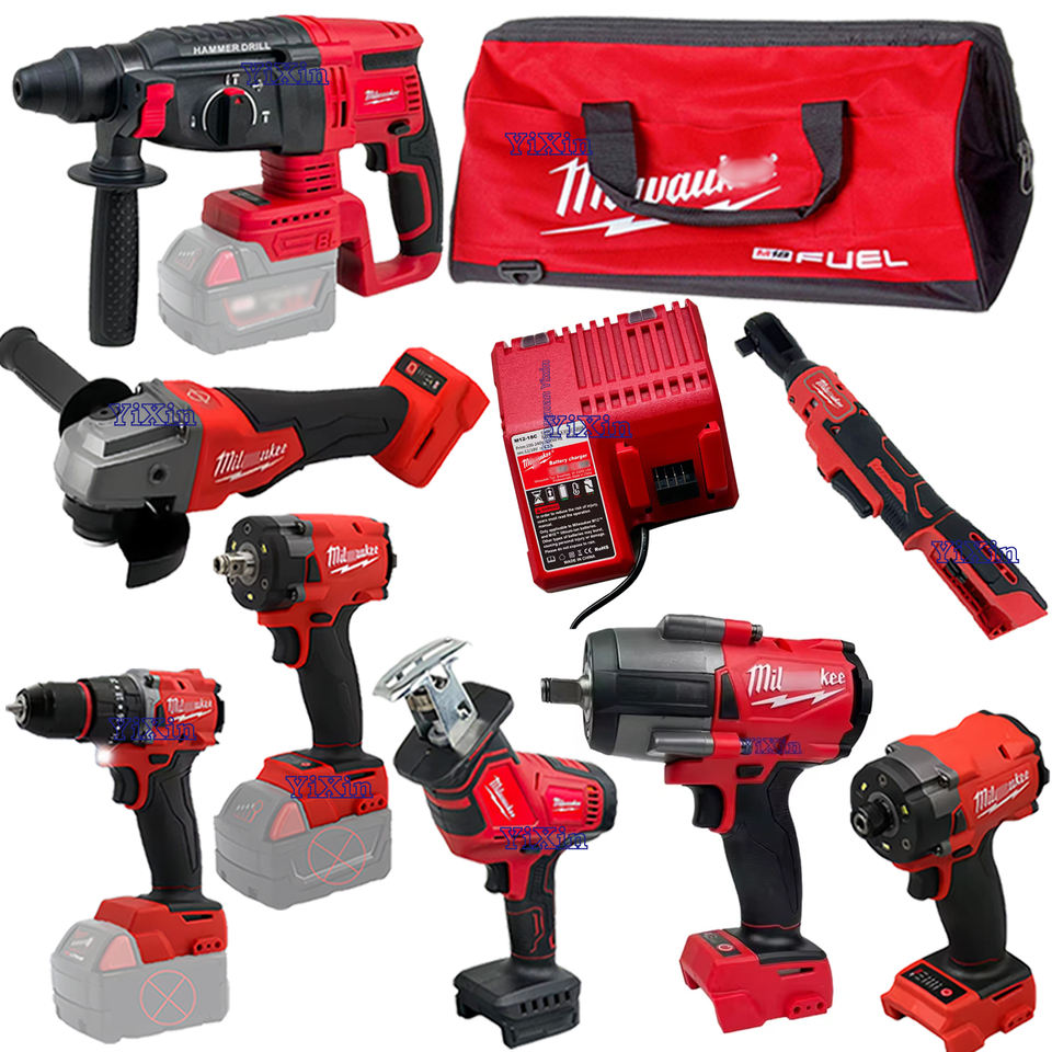 Juego de Herramientas Eléctricas Inalámbricas de Litio-Ion de 18V, Amoladora, Llave de Impacto, Taladro, Destornillador, Juego de Herramientas 9 en 1 de Alta Calidad NUEVO