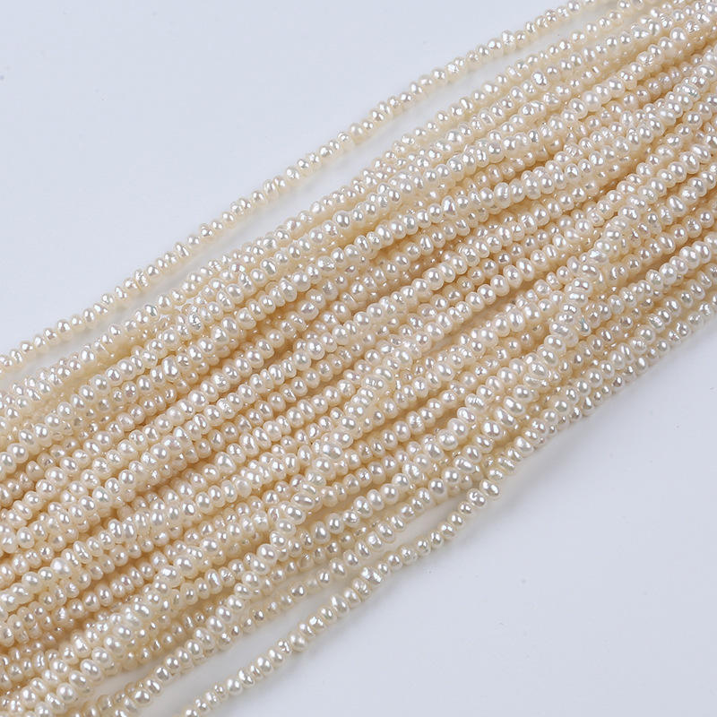 Perlas Blancas Naturales de Agua Dulce de 18 cm, 2.5-3 mm, Perlas Planas Pequeñas con Orificio Mediano, Perlas Blancas Sueltas para Manualidades, Venta al por Mayor