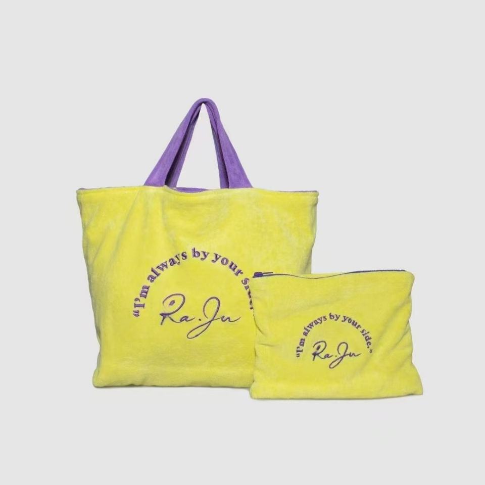 Juego de Bolsos Tote de Felpa de Color Sólido de 18 Pulgadas, Bolsos Cruzados Portátiles para Mujer con Logotipo Bordado, Bolsos de Cosméticos de 8 Pulgadas para Exteriores