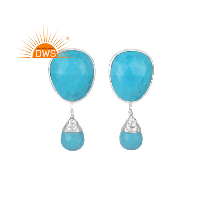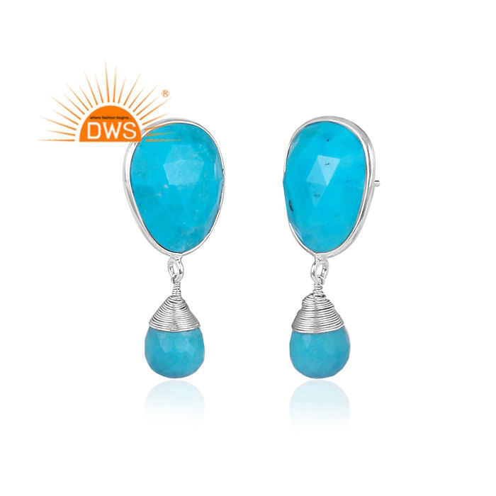 Pendientes de plata de ley 925 con diseño de pera, joyería fina con piedras preciosas naturales de color turquesa, en oro de 18k, para venta al por mayor
