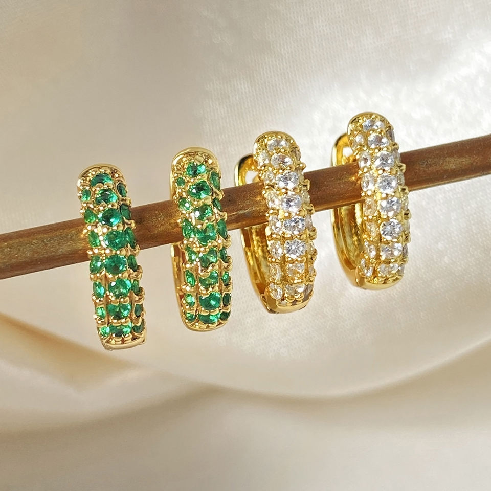 Pendientes de Aro Gruesos con Circonitas de Colores en Forma de Cúpula Ancha, Chapados en Oro de 18K - Regalo Unisex de Moda