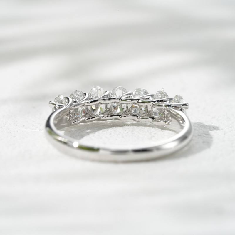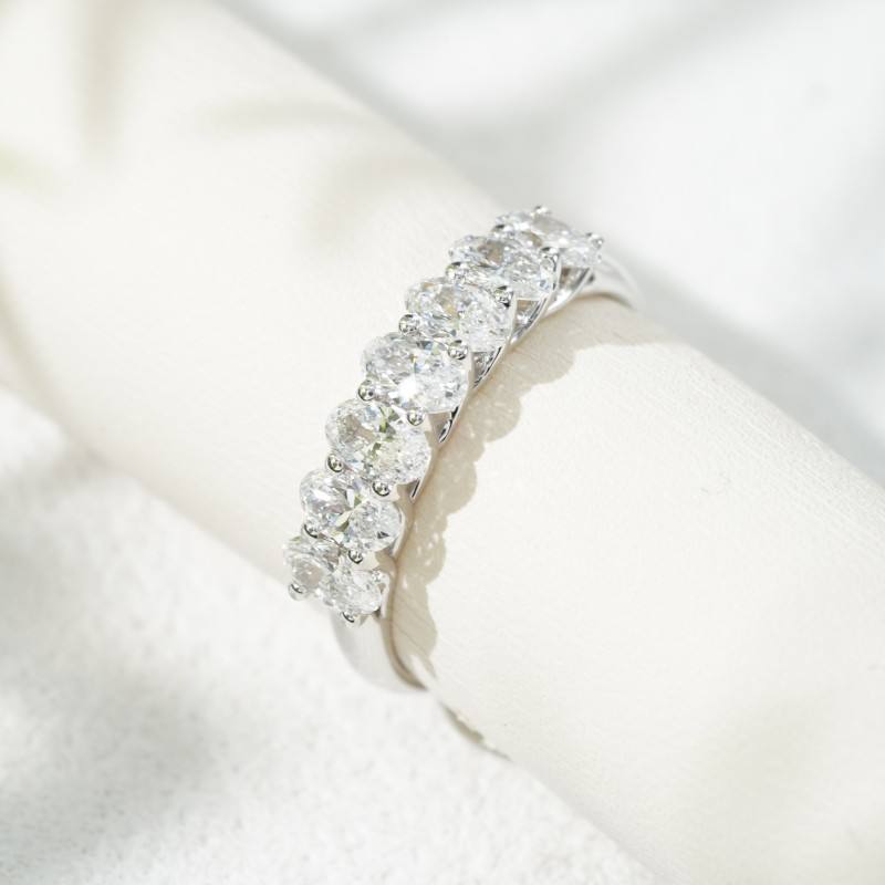 Anillo Fino de Oro Sólido de 18k, Anillo de Dedo con Forma Ovalada de 3*5mm, Banda de Eternidad con Diamante de Laboratorio