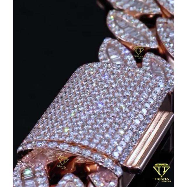 Collar de eslabones cubanos de moissanita de 18mm con baguette y corte redondo VVS, probador de diamantes con pases de moissanita