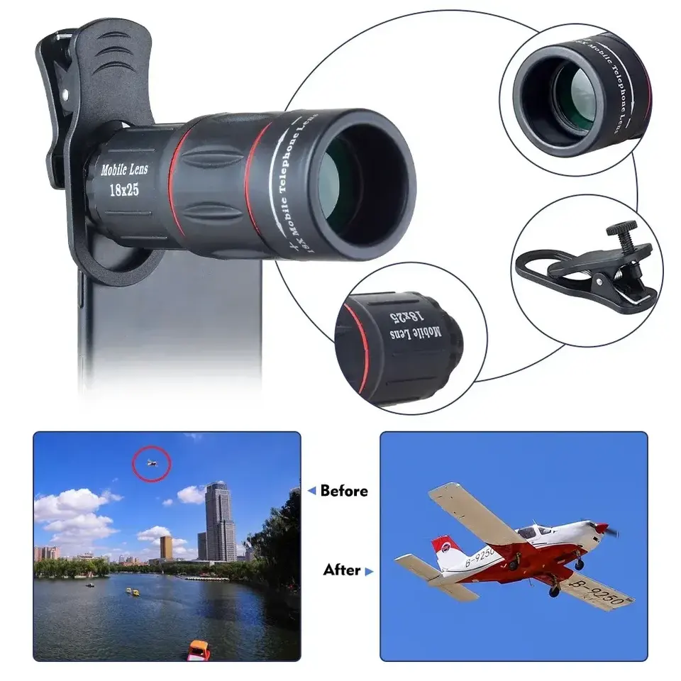 Lente de cámara móvil 18x25 adecuada para iPhone Samsung y teléfonos inteligentes Android Monocular universal de gran angular de alta definición
