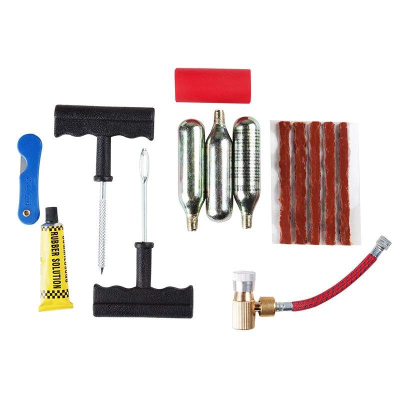 19 Uds herramienta de mano coche motocicleta bicicleta plana sin cámara kits de reparación de neumáticos Kit de reparación de neumáticos/Herramienta de reparación de neumáticos con cartucho CO2