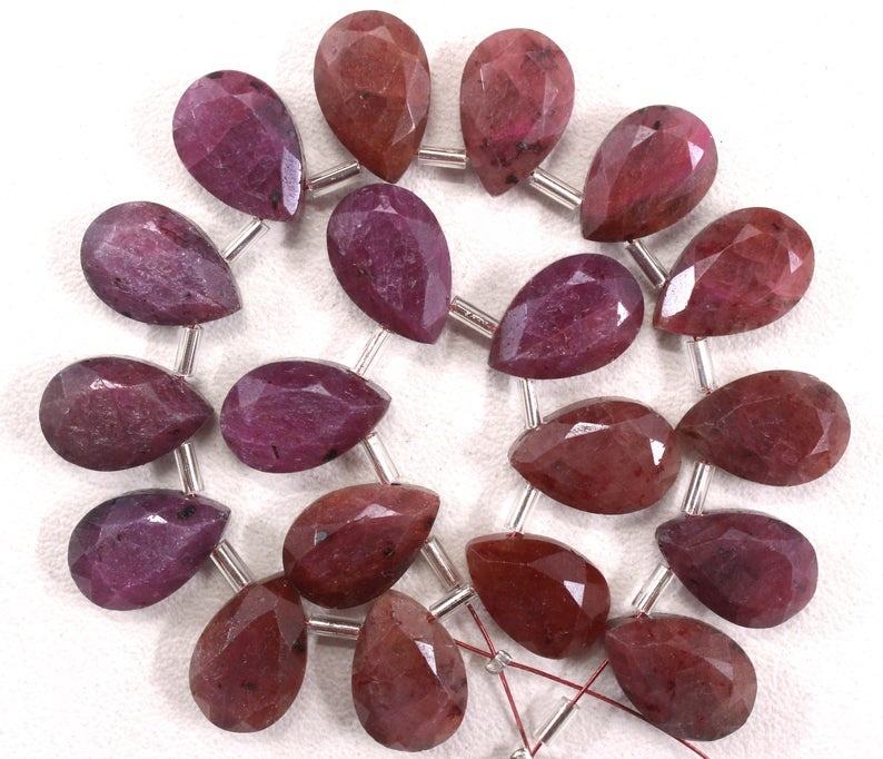 Piedras naturales de rubí rojo, piedras semipreciosas facetadas en forma de pera, fabricación de joyas, 19 piezas
