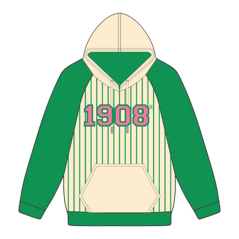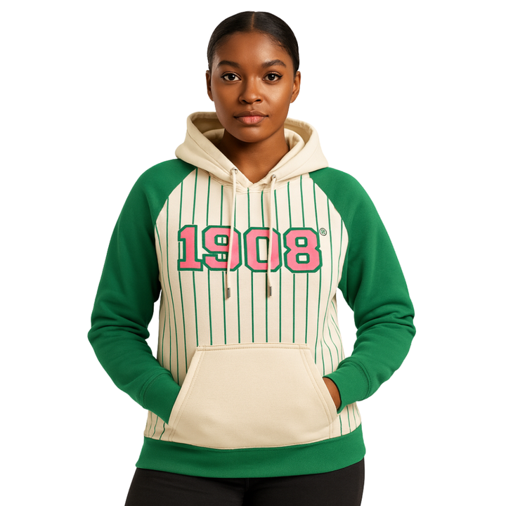 1908 cuerpo neutro verde raglán rayas pulóver Sudadera con capucha mezcla de algodón hermandad griega ropa personalizada Divine Nine HBCU vida griega