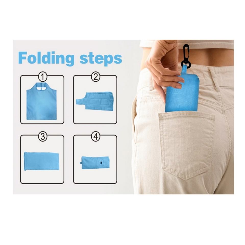 Bolsa de Compras Reutilizable de Poliéster Ripstop 190T, Lavable a Máquina, con Logotipo Impreso, Plegable, con Asa Larga de Cuerda