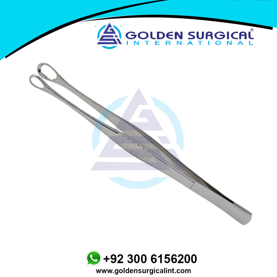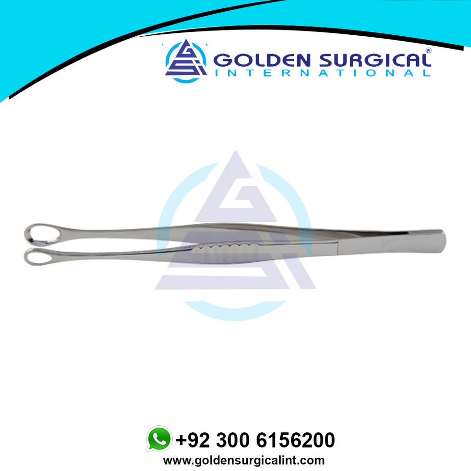 Pinzas Intestinales Denis Browne de 190 mm con Patrón de Resorte, Empuñaduras Serradas y Mordazas Fenestradas, a Granel