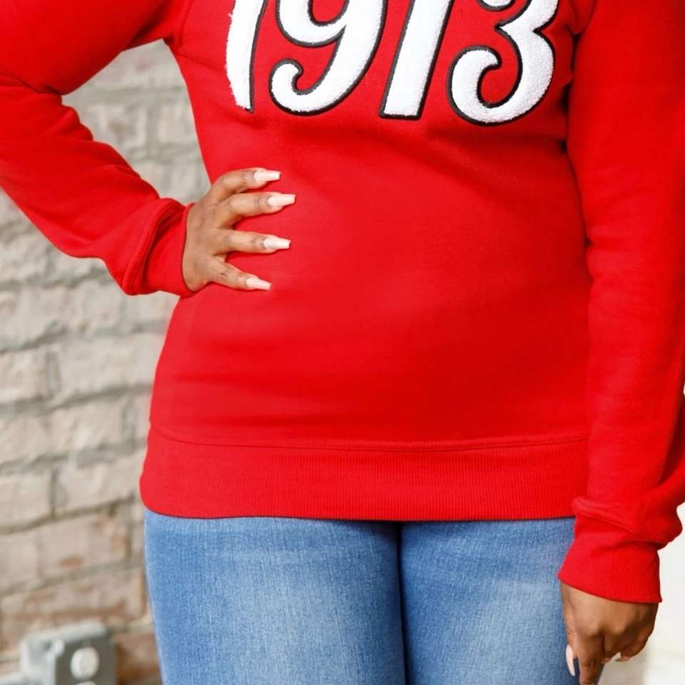 1913 Script Chenille Sudadera de cuello redondo Negro Premium Fleece Sorority Apparel Greek DST Delta Casual Winter Top