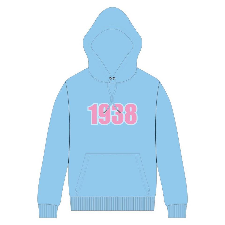 Sudadera con capucha azul de Jack y Jill of America 1938, bordado de chenilla rosa, ropa negra para organizaciones cívicas y profesionales