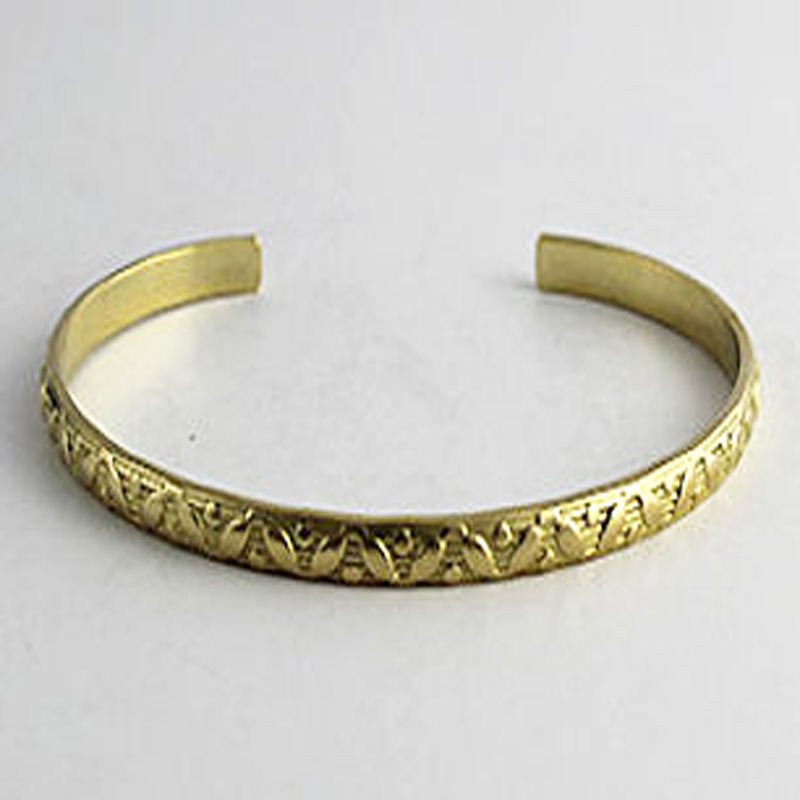1940 Grecia verde Floral Año Nuevo brazalete martillado plano griego mate pulsera de oro brillante latón indio Boho Chic joyería