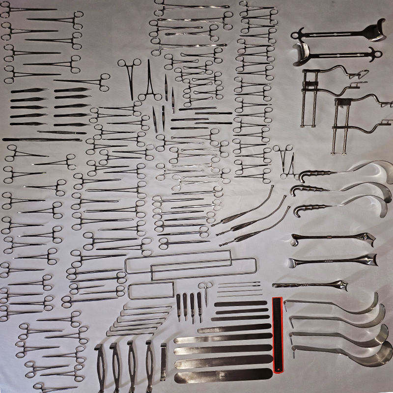 Juego de laparotomía de 197 Uds. Kit completo de instrumentos quirúrgicos de acero inoxidable pasivado antioxidante O herramientas para cirugía General