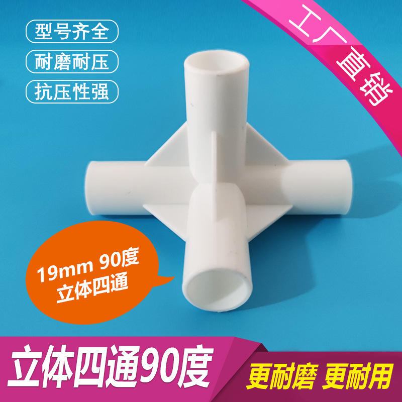 Especificaciones del Producto:19 mm de diámetro interior, codo tridimensional de 90 grados y cuatro vías.
