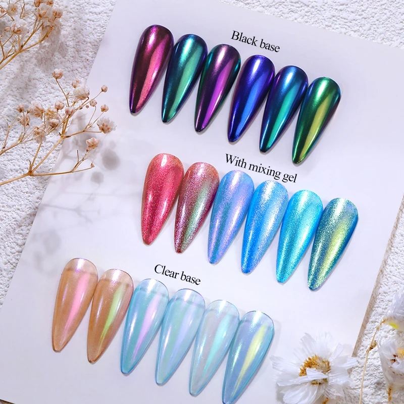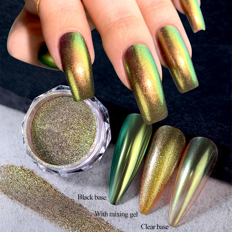 1 caja de polvo metálico para uñas efecto perla camaleón frotamiento en espejo pigmento cromado polvo UV Gel esmalte Nail Art manicura suministros
