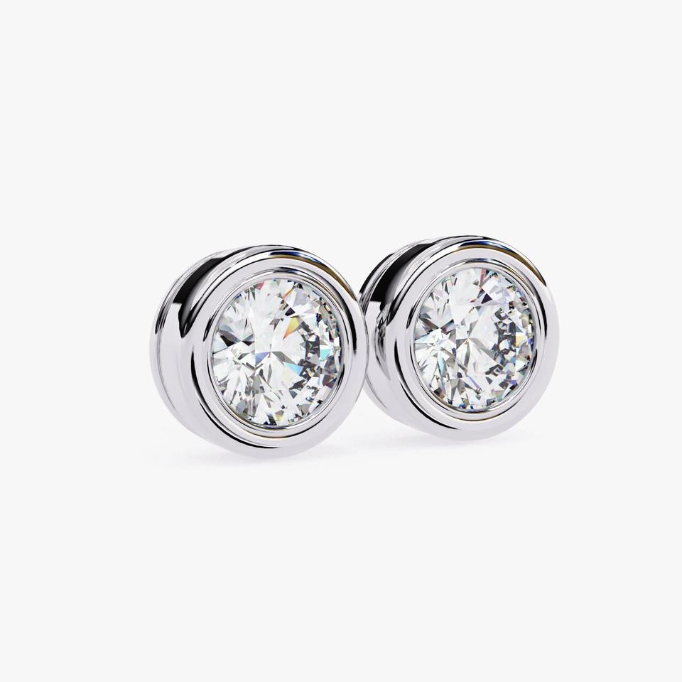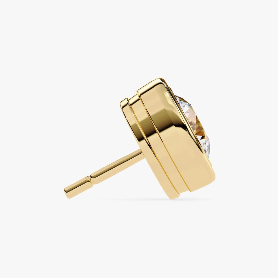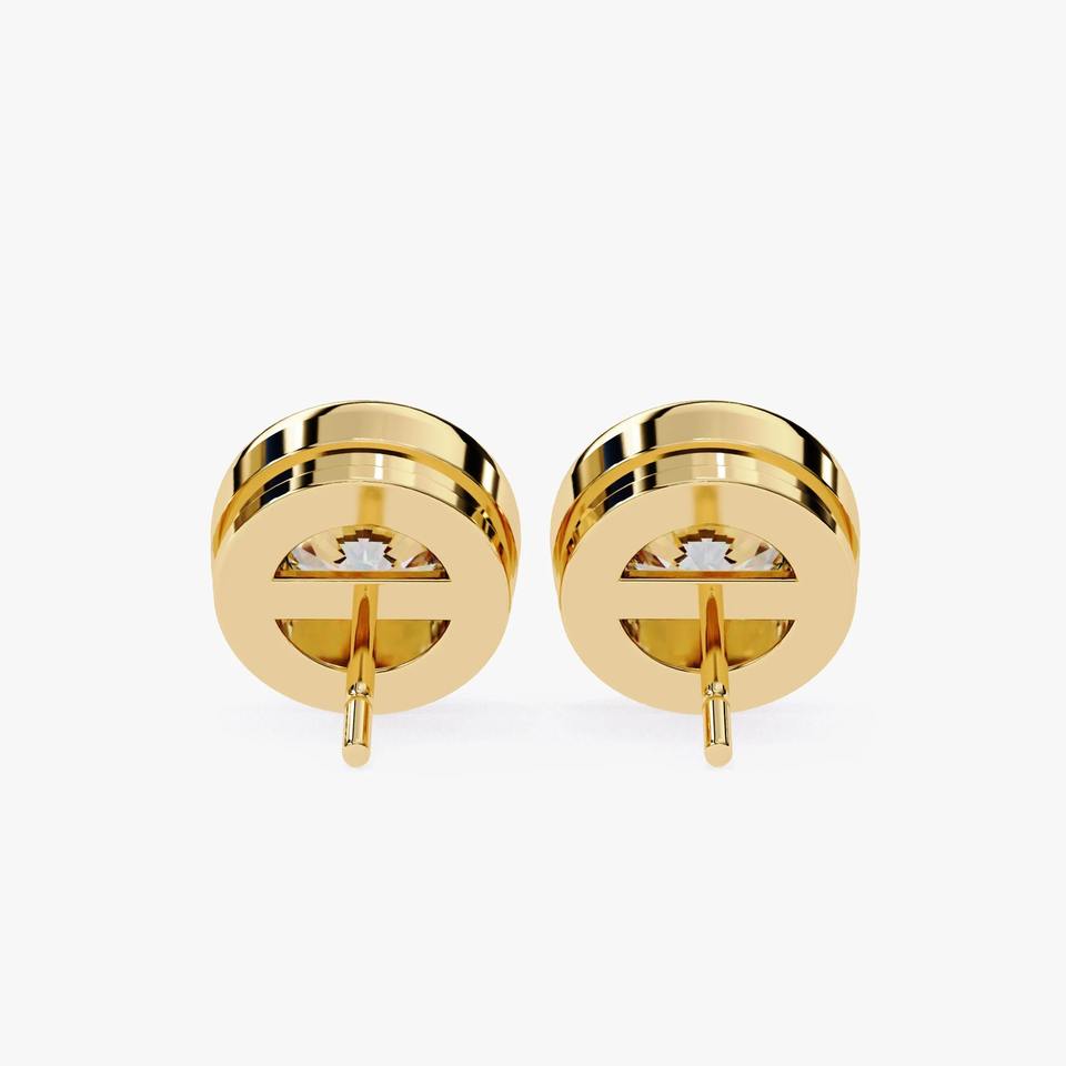 Pendientes de Diamante Cultivado en Laboratorio con Bisel Redondo de 1 Quilate, Oro Amarillo de 14K, Joyería Minimalista para Boda, Regalo para Mujer