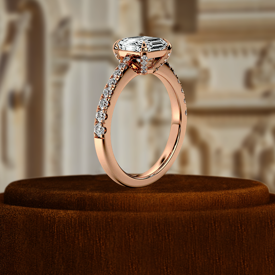 Anillo de Diamante Cultivado en Laboratorio con Corte Asscher de 1 Quilate, Anillo de Compromiso con Diamante, Anillo de Galería con Engaste Catedral Único, Certificado IGI