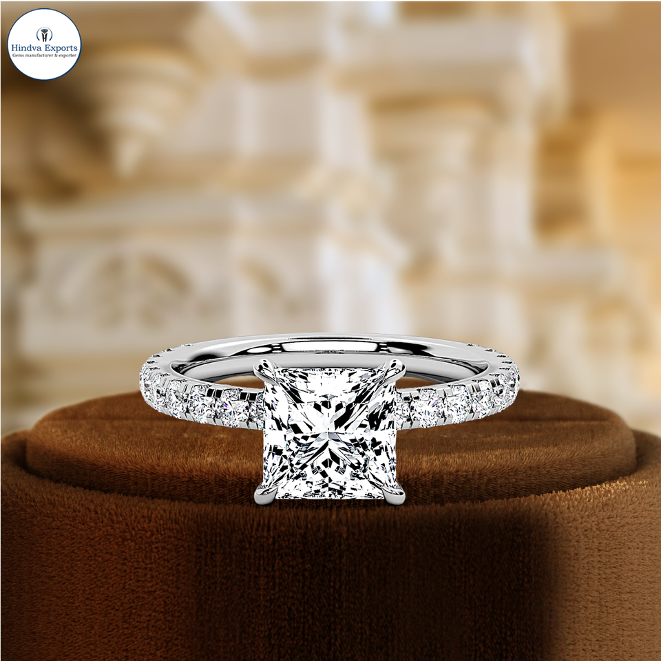 Anillo de Compromiso con Diamante Cultivado en Laboratorio de 1 Quilate, Estilo Halo con Banda Pavé, Certificado IGI, Anillo de Oro Blanco Sólido de 14k