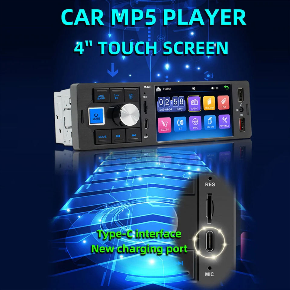 1DIN Auto Radio Car MP5 Player Pantalla táctil de 4 pulgadas FM/AM Banda de onda Dual USB Tipo C Manos libres Cámara de marcha atrás M-60