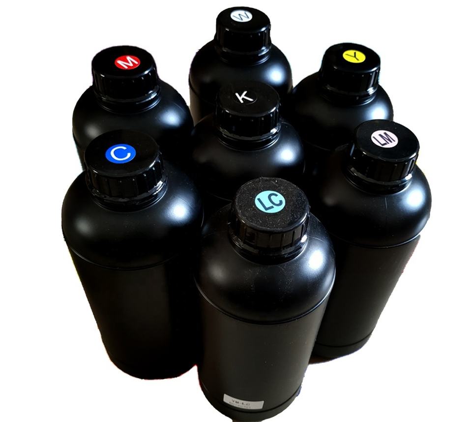 Tinta UV de 1L para Ricoh Gen5/6, Fórmula de Viscosidad Media para Impresoras Híbridas de Cama Plana, Excelente Adhesión a las Superficies