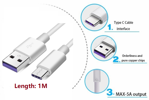 Cable USB 3,1 de carga rápida para móvil, Cable tipo C de 1M, 5A, para Huawei Mate 20, P40, P30, P20 Pro Lite, cargador de USB-C