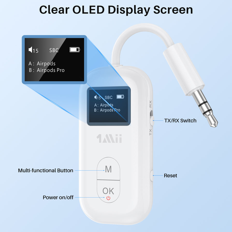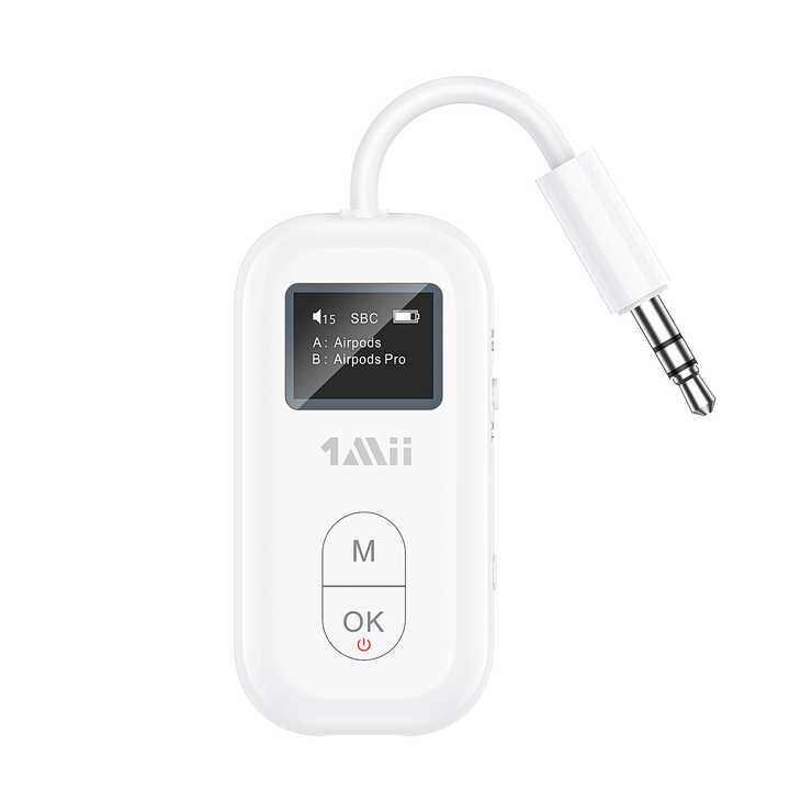 Adaptador Bluetooth AUX 1Mii Airplane de 3,5mm con Aptx-LL/HD y transmisor y receptor de audio inalámbrico Bluetooth 5,2 adaptable