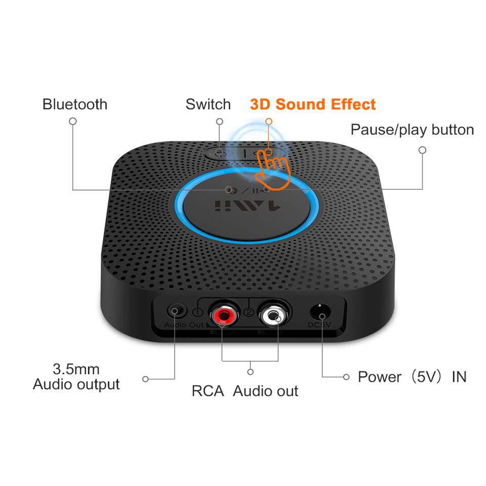 Receptor de Música Bluetooth 1Mii Más Vendido con Sonido Envolvente 3D AptX LL/HD Bluetooth 5.1 Receptor Estéreo RCA para Audio en Casa