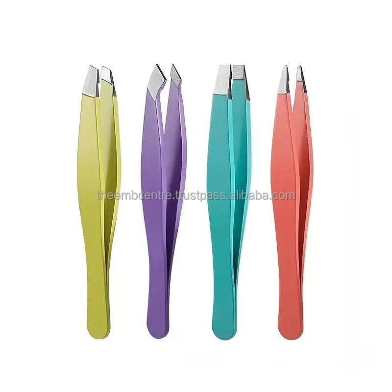Pinzas Profesionales Negras de Acero Inoxidable para Cejas, Punta Plana Inclinada, Depilación, 1 Unidad