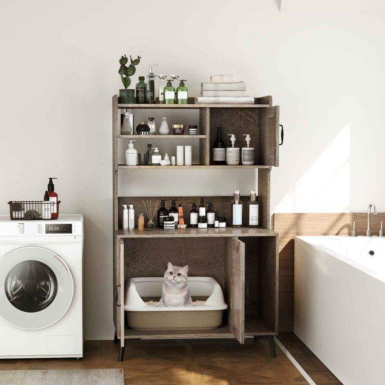 1 unidad de caja de arena grande para gatos con estantes de almacenamiento y exhibición, accesorio premium para la comodidad felina
