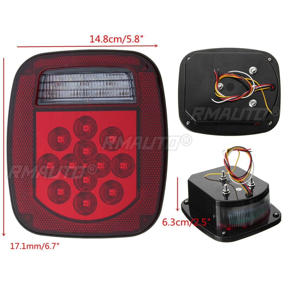 1 Pieza Luz Trasera de Freno y Direccional para Camión/Remolque/Barco, para Jeep TJ/CJ/YJ/JK, Luz Lateral de 39 LED, Luz de Freno, Reversa y Matrícula