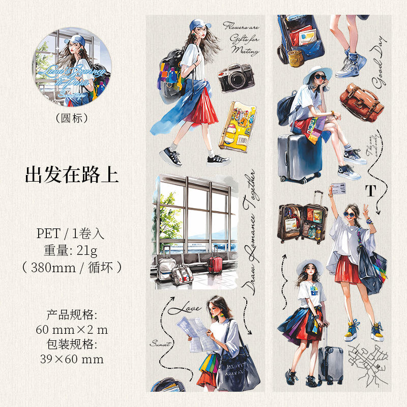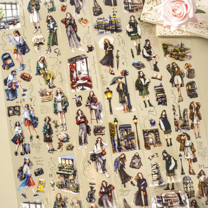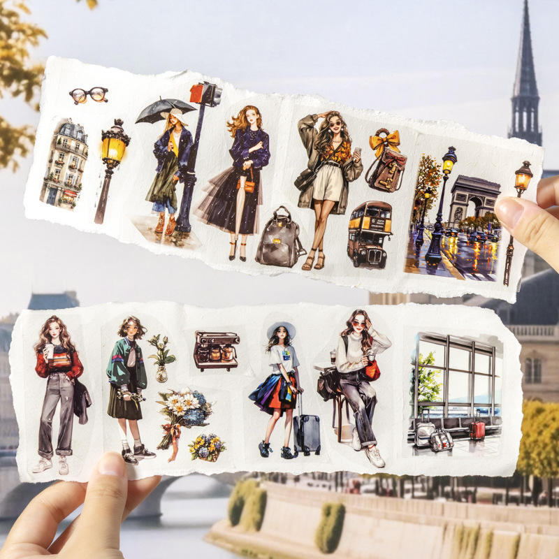 1 rollo Luna's Paris Journey Series Tema de viaje Paisaje Collage Cinta de PET original