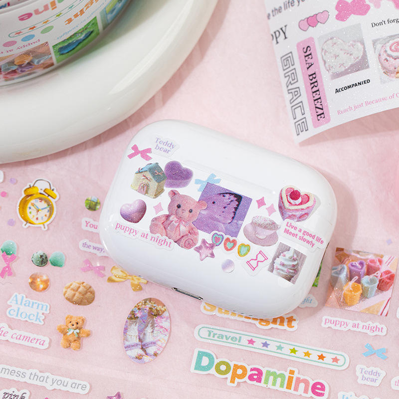 1 rollo de cinta para escuchar la serie Spring de patrones coreanos, manual para teléfono móvil, tarjeta trasera, Collage decorativo