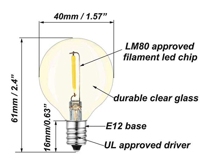 Bombillas LED de Repuesto G40 de 1W, Bombillas Redondas Pequeñas para Patio, Luces de Cadena Globo de 2200k, E12