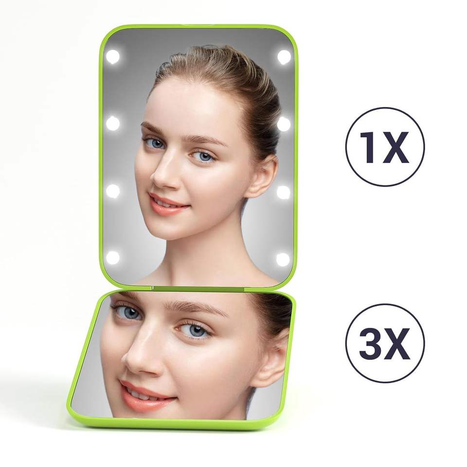 Espejo de Maquillaje Compacto LED de Viaje con Aumento 1X/3X, Espejo de Bolsillo de Doble Cara, Portátil, Plegable, con Luz, para Bolso