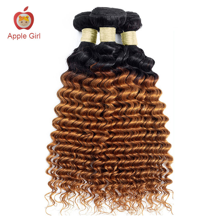 Extensión de cabello Remy brasileño de onda profunda 1b/27 Paquetes de tejido Cabello alineado con cutícula Virgen sin procesar de Apple Girl