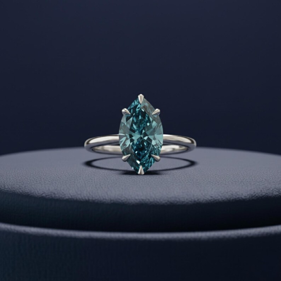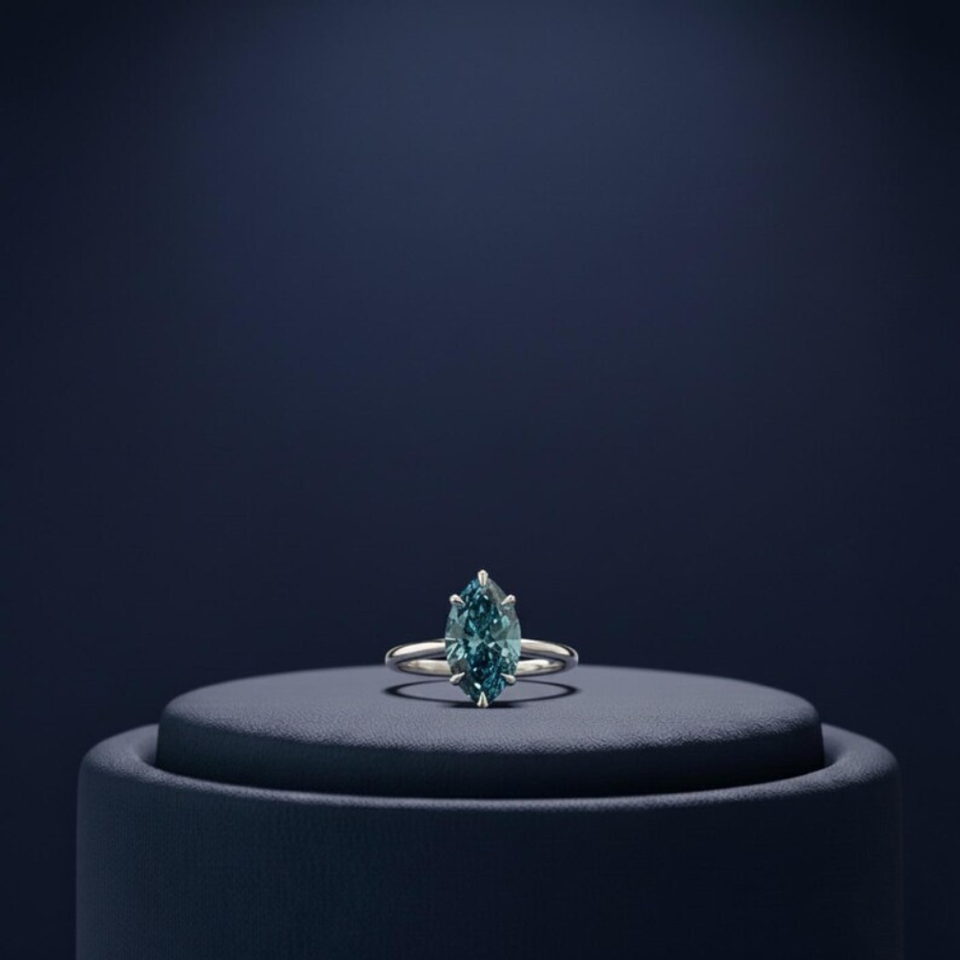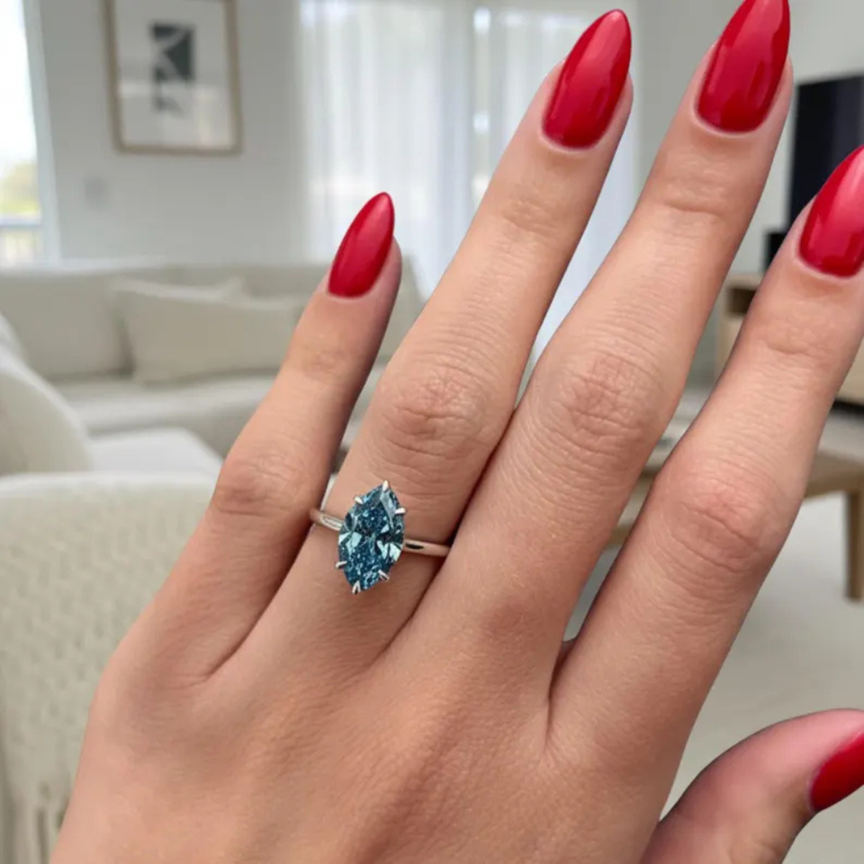 Anillo de Diamante de Laboratorio Corte Marquesa Azul Elegante