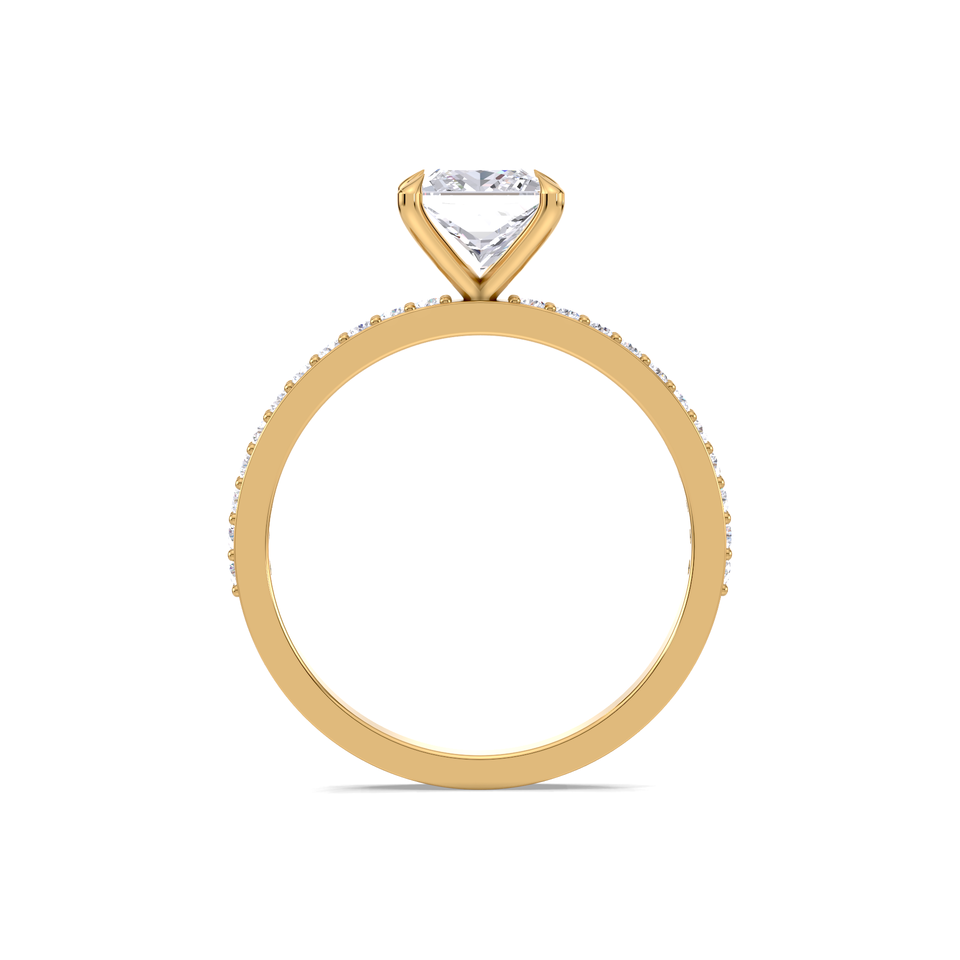 Anillo de compromiso con diamante de laboratorio de corte princesa de 1 quilate para mujer, banda pavé de oro amarillo, blanco y rosa de 18 quilates, anillo de boda nupcial
