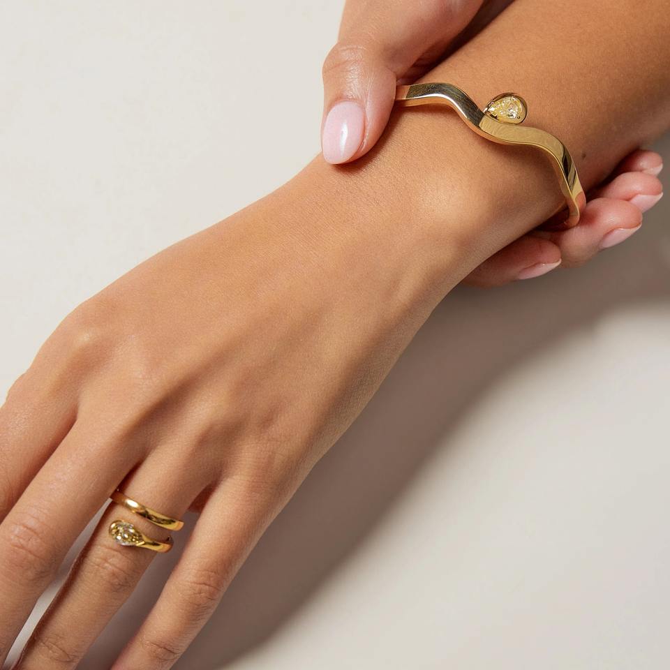 Brazalete de Diamantes Amarillos de Fantasía de Moissanita de 1 Quilate, Plata de Ley 925, Oro Sólido de 10K/14K/18K, Brazalete de Bisutería de Moda para Boda