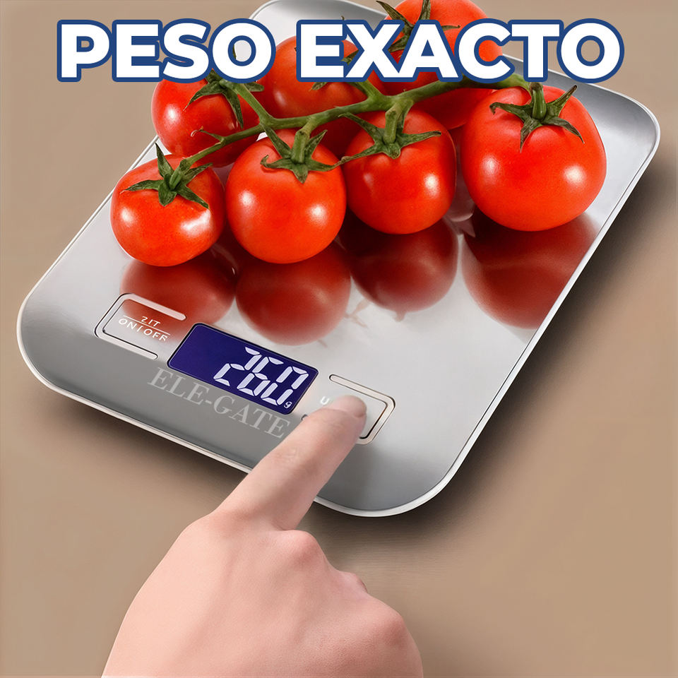 Báscula Digital de Cocina de 1g de Precisión con Capacidad de 10kg, Pantalla LCD de Acero Inoxidable, Funciona con Batería