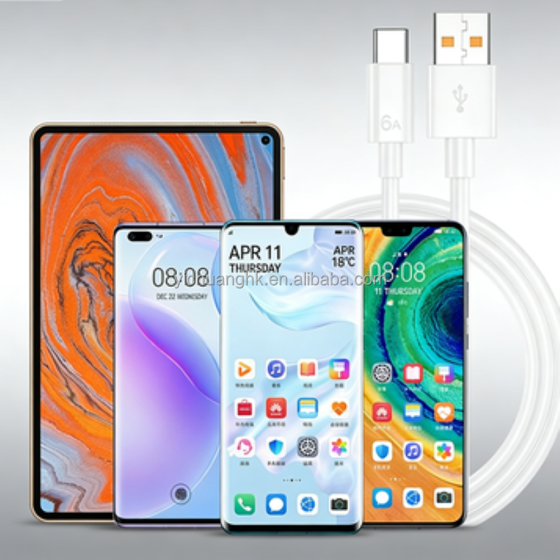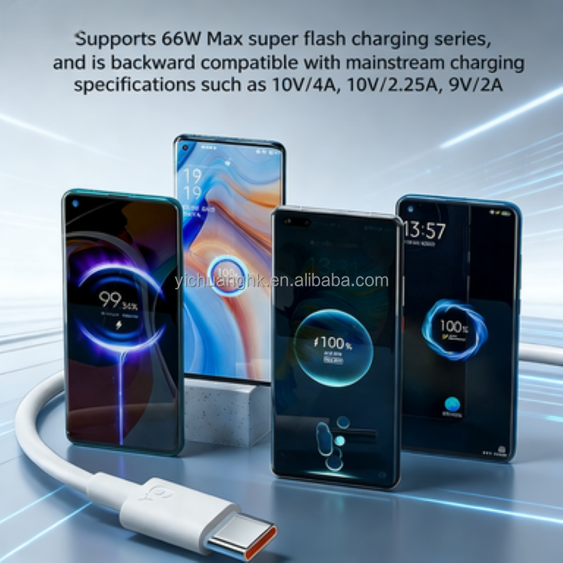 Cable Tipo-C de Cobre Puro Blanco de 1 m, Carga Rápida de 3 A, Carga Súper Rápida de 66 W, Sincronización de Datos, PVC para Android