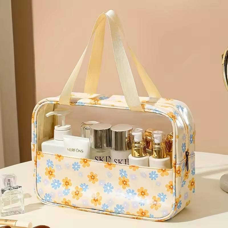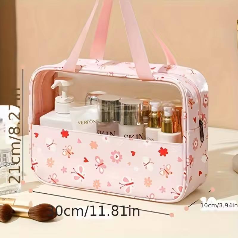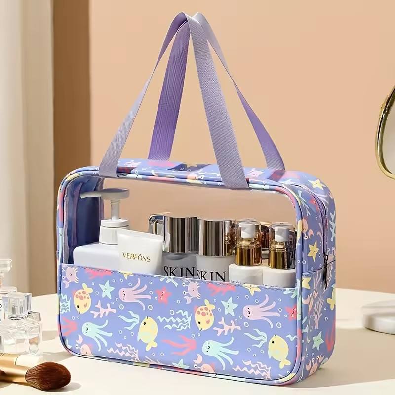 Bolsa de cosméticos transparente con estampado, impermeable, portátil, de gran capacidad, para baño, viaje, 1 ud.