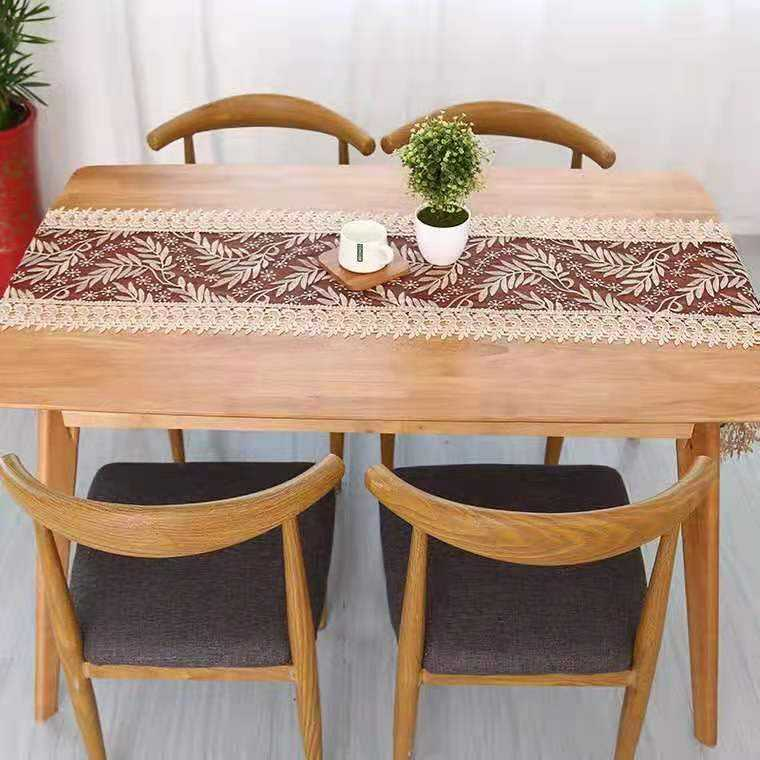 Camino de Mesa Puntiagudo Transparente Bordado con Encaje de Dacrón de Poliéster Lavable Ecológico de Estilo Rústico Moderno, Estilo Campestre Americano