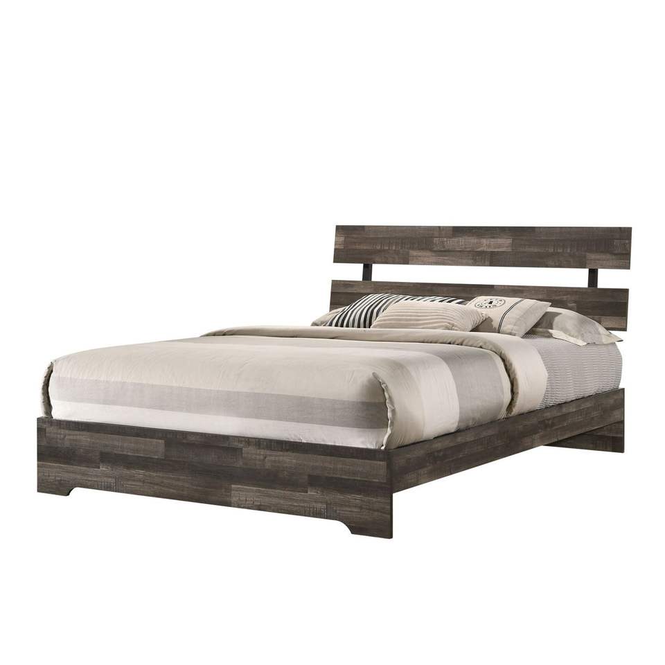 Cabecera de Cama King Size Rústica con Plataforma y Listones, Mueble de Dormitorio Contemporáneo de Perfil Bajo con Acabado Marrón Hecho de Madera