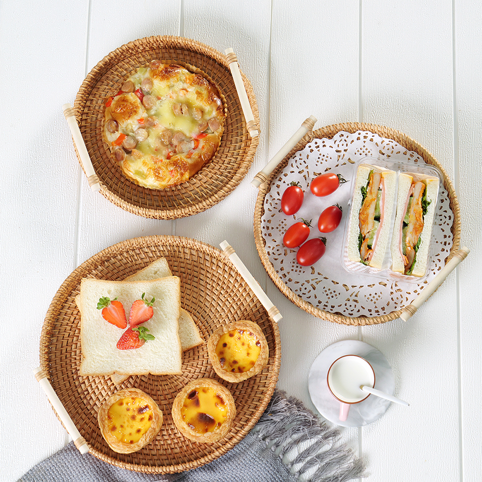 Nombre del producto:Bandeja redonda de mimbre bandeja de servir fruta pan placa cesta