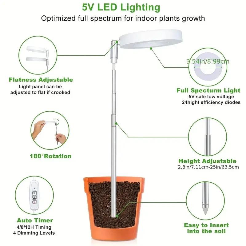 1 Lámpara de Cultivo LED de Espectro Completo para Plantas de Interior, Altura Ajustable con Temporizador de Encendido/Apagado Automático, 4 Niveles de Intensidad