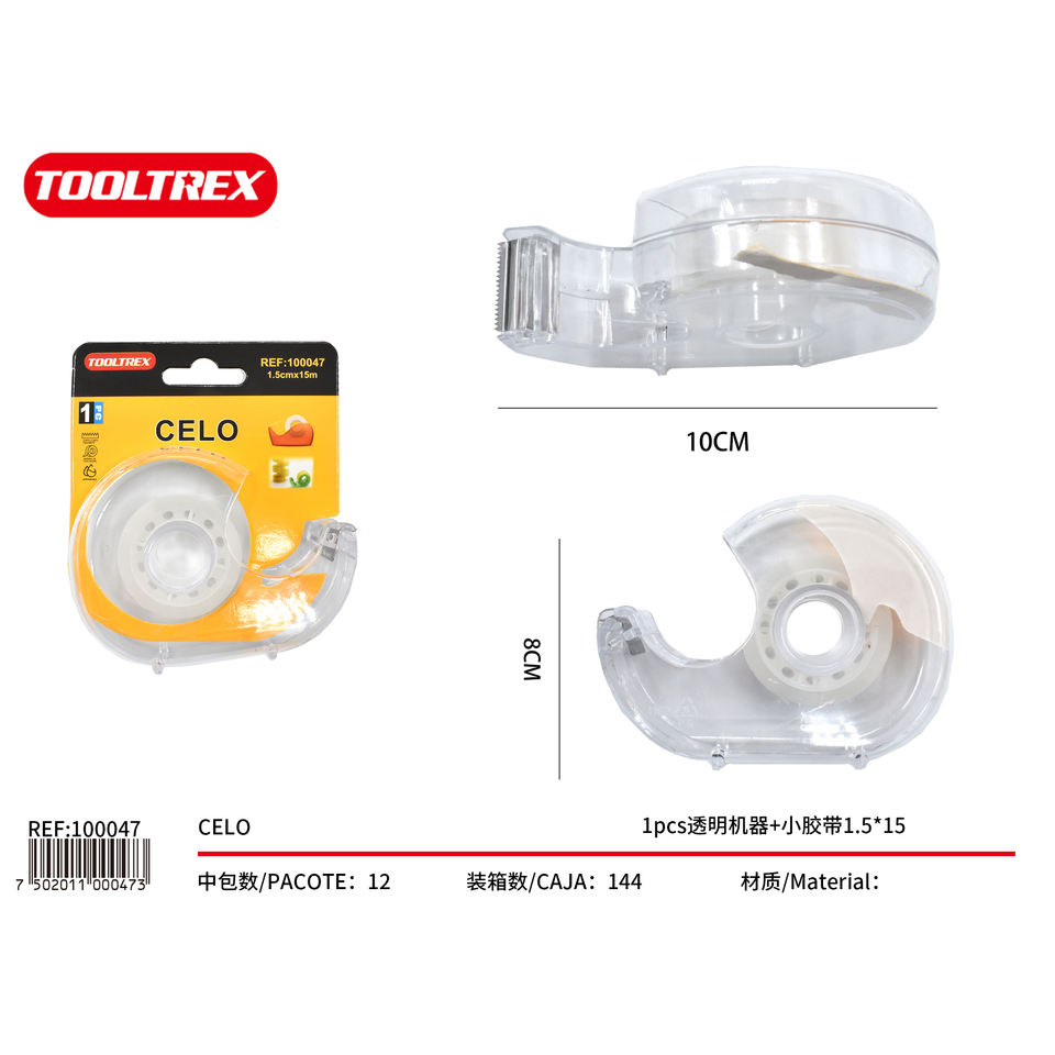 Dispensador de cinta adhesiva Tooltrex de 1.5 cm x 15 m, rodillo de plástico transparente para uso escolar y de oficina
