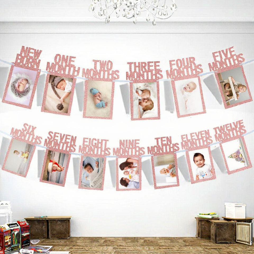 Pancarta Fotográfica para Primer Cumpleaños de Niño o Niña, Recién Nacido hasta 12 Meses, Decoraciones para Primer Cumpleaños Hechas de Papel