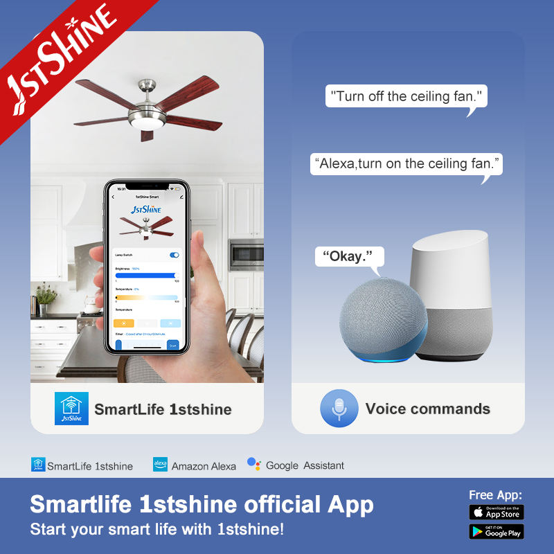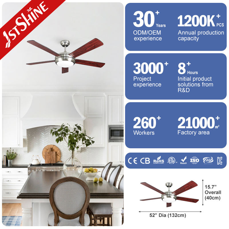Ventilador de techo con control remoto, motor de refrigeración por aire de 52 pulgadas, 5 hojas de madera contrachapada, iluminación industrial, fábrica de ventiladores de techo, 1stshine